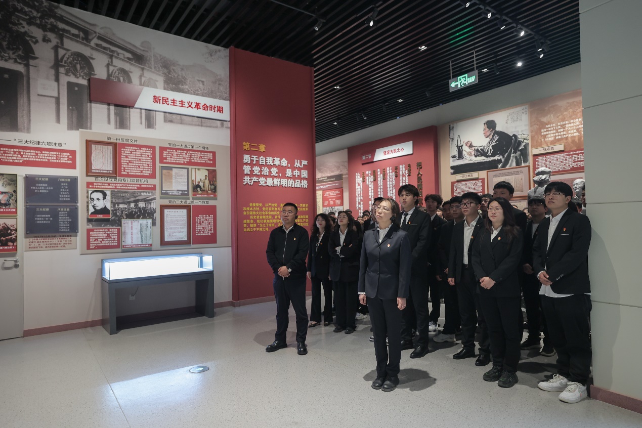 在宣誓仪式开始前,党员同志们跟随着讲解员的脚步,分批次参观了“牢记初心使命”主题展和山西省贯彻落实中央八项规定精神专题展,认真聆听了习近平总书记关于全面从严治党重要论述、党的自我革命历程和党的十八大以来山西正风肃纪反腐成果、典型案例剖析和廉洁文化建设等内容,从“时代叩问、初心如磐”“崇德修身、治本之道”,到“严守铁规矩”,珍贵的史料、鲜活的案例、沉浸式的学习,使大家深切感悟到了中国共产党人廉洁奉公的高尚品质和永葆清正廉洁的政治本色。
