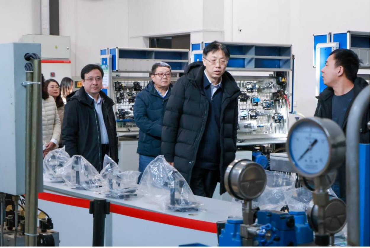 在学院党委书记王莉和党委副书记、院长朱广宇的陪同下,张靖院士带领与会人员首先参观了学院部分本科教学专业实验室、教学档案室,了解了学院关于工程教育专业认证实验室建设工作情况,现场交流认证材料准备流程、教学档案管理情况等。在随后的交流会议中,学院相关负责人分享了学院专业建设以及机械电子工程专业认证工作的经验,与会人员围绕工程教育专业认证工作展开了讨论。